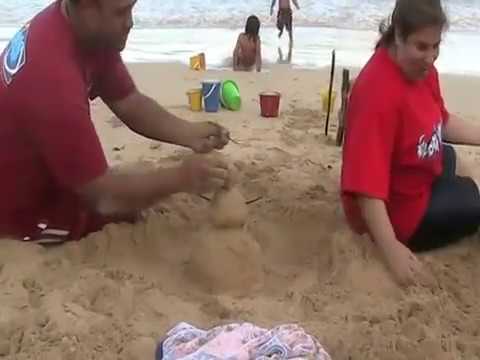 Snowmen (Sandmen) at Hukilau Beach Christmas in Hawaii